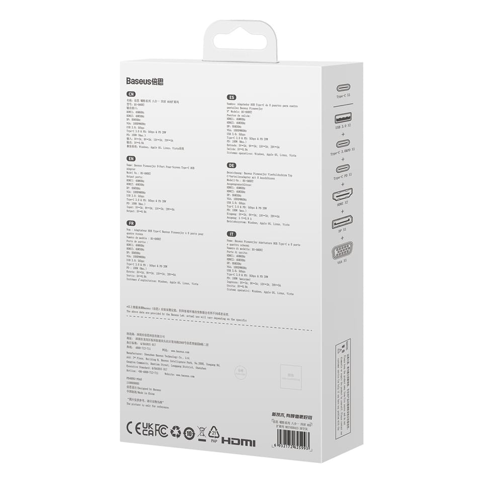 Kod produktu: 1030274Baseus PioneerJoy 8w1 to więcej niż hub - to profesjonalne centrum dowodzenia dla Twojego laptopa. Jeśli chcesz wycisnąć maksimum z jednego portu USB-C, to urządzenie jest stworzone z myślą o Tobie. Umożliwia jednoczesne podłączenie aż czterech ekranów (HDMI1, HDMI2, DisplayPort i VGA), oferując oszałamiającą jakość obrazu do 4K przy 120 Hz. To idealne rozwiązanie dla grafików, analityków danych, programistów, streamerów i każdego, kto działa w wielu oknach jednocześnie. Wbudowany port PD 100W zasili laptopa, a dwa dodatkowe porty USB-C (70W i 20W) pozwolą Ci ładować telefon, tablet lub inne urządzenia bez plątaniny kabli. Superszybkie porty USB 3.0 (do 5 Gbps) umożliwiają błyskawiczne przesyłanie danych, a inteligentny układ zarządzania energią i temperaturą chroni sprzęt przed przeciążeniem. Całość zamknięta jest w solidnej obudowie ze szczotkowanego aluminium i szkła hartowanego, której design doceniło jury Red Dot Design Award 2022. To urządzenie klasy premium, które łączy wszystko, czego oczekujesz od nowoczesnego stanowiska pracy lub stacji dokującej - uniwersalność, szybkość, bezpieczeństwo i styl.Obsługiwane rozdzielczości wyjściowe: Uwaga: powyższe rozdzielczości obowiązują dla laptopów obsługujących protokół DP1.4. Przy DP1.2 ekran główny laptopa wyłączy się po podłączeniu trzech zewnętrznych monitorów.Najważniejsze cechy: