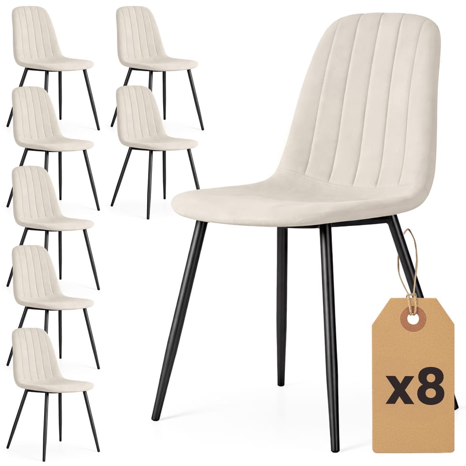 8x Welurowe krzesło tapicerowane pikowane Beżowe LUMO Czarne nogi