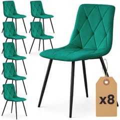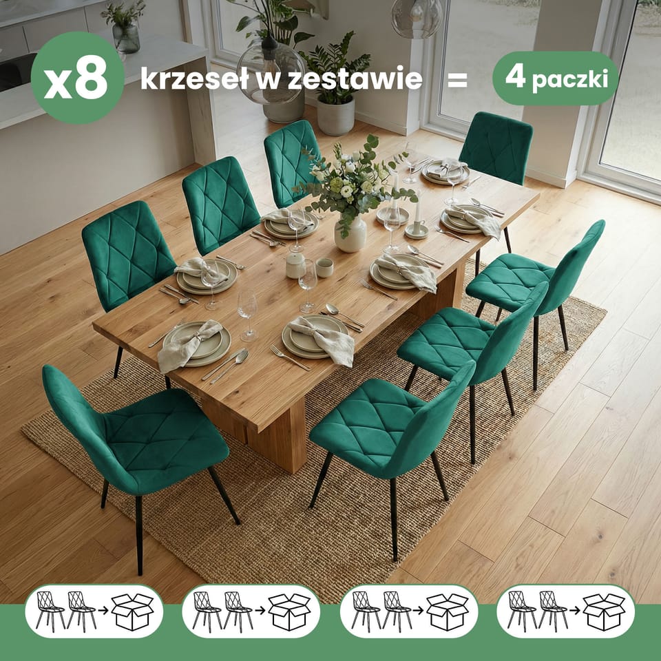 8x Welurowe krzesło tapicerowane pikowane Butelkowa Zieleń MILO Czarne nogi