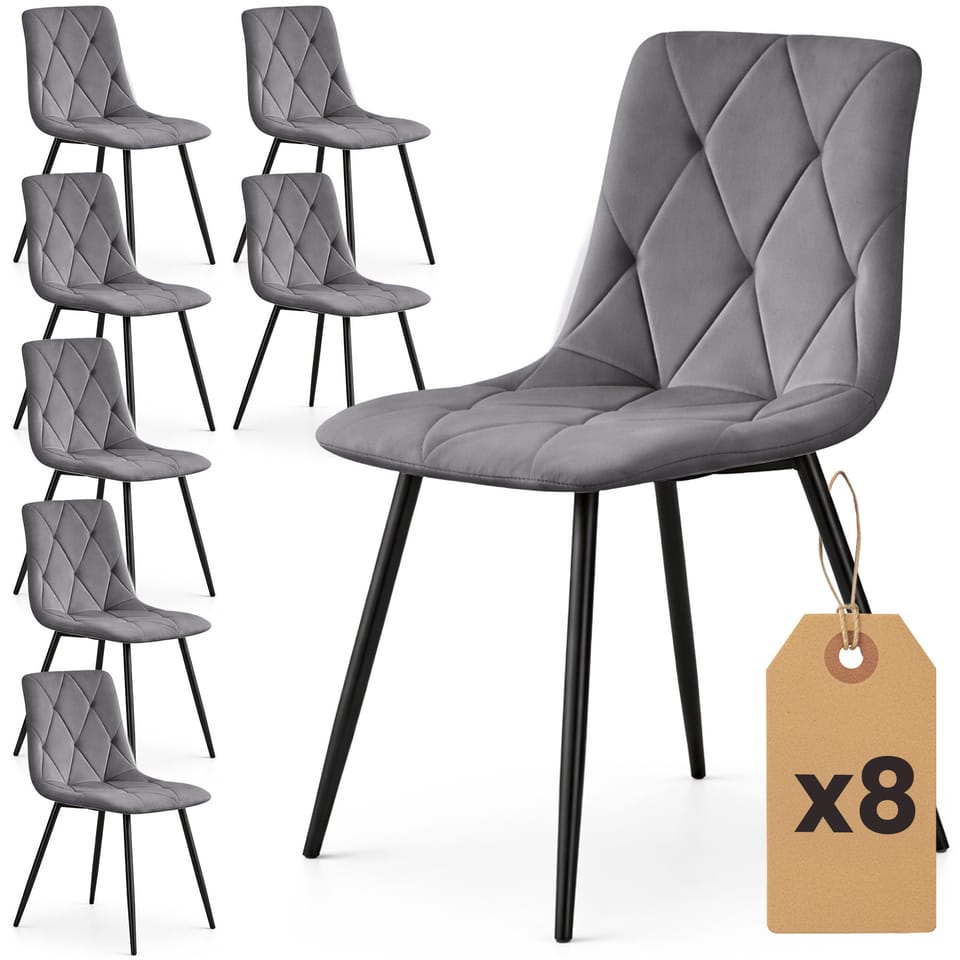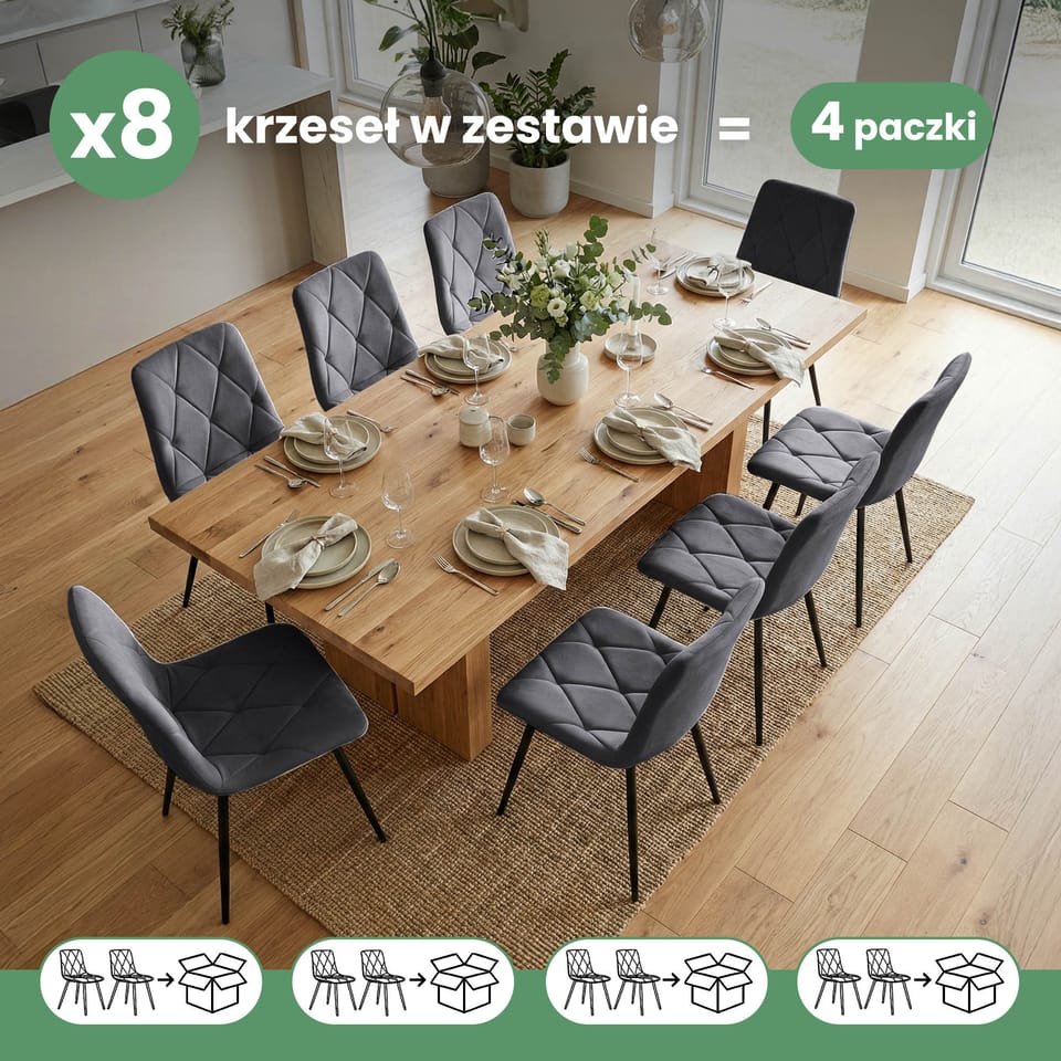 8x Welurowe krzesło tapicerowane pikowane Ciemny Grafit MILO Czarne nogi