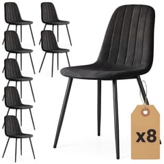 8x Welurowe krzesło tapicerowane pikowane Czarne LUMO Czarne nogi