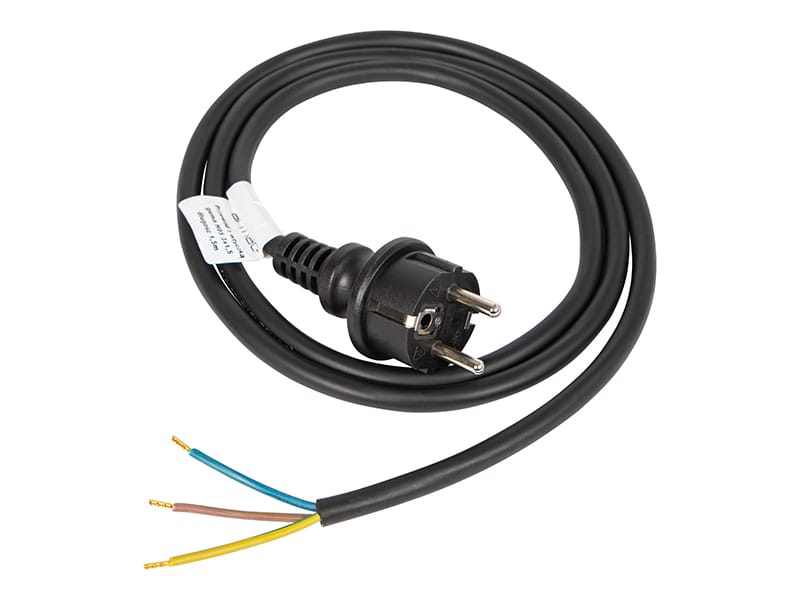Przewd przyłączeniowy w powłoce gumowej zakończony fabrycznie zalewaną, nierozbieralną wtyczką. Z drugiej strony żyły przewodu zakończone tulejkami ułatwiającymi podłączenie do urządzenia. Ze względu na wysoką odporność powłoki gumowej na ścieranie, wilgoć i trudne warunki pracy, przewd doskonale nadaje się do wszystkich urządzeń stałych i przenośnych używanych w domu, warsztacie, czy na budowie.