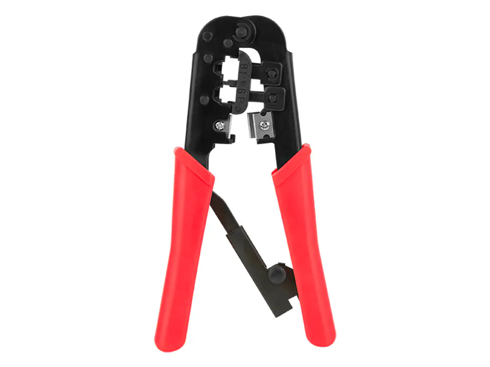 Profesjonalne narzędzie do zaciskania wtyków telefonicznych. Prosta i wygodna obsługa, solidne wykonanie. Zaciskarka umożliwia dodatkowo cięcie i ściąganie izolacji.