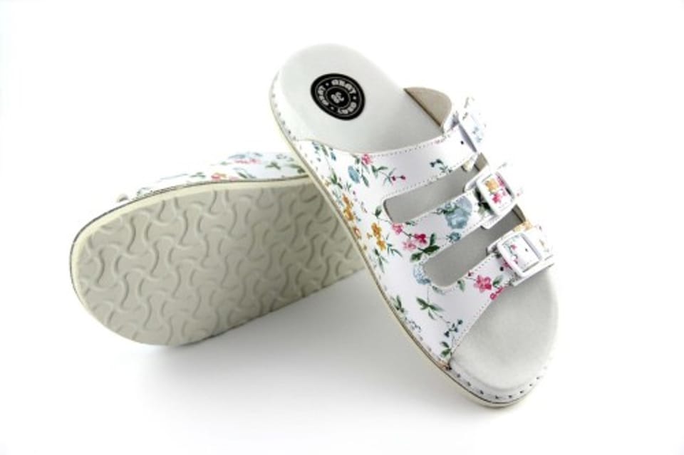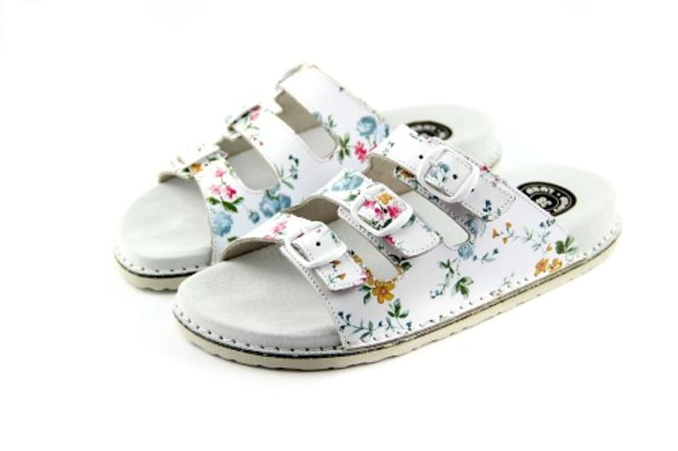 ABAT ROZM. 37 W KWIATY Klapki damskie, trzy paski regulowane sprzączkami