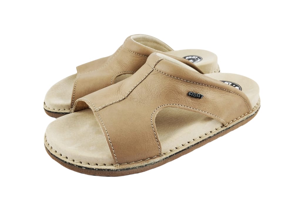 ABAT ROZM. 40 Klapki ortopedyczne damsko-męskie beżowe, skórzane, antyposlizgowe