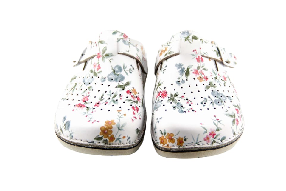 ABAT ROZM. 43 KWIATY Klapki damsko-męskie zakryte z dziurkami, regulowany pasek