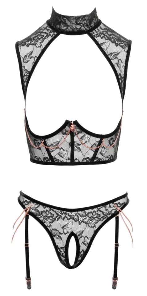 Abierta Fina Open Cup Set M – wyrafinowany komplet koronkowy z unikalnymi detalamiNajważniejsze cechy produktu: