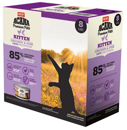 ACANA Premium Pâté | Kurczak i ryba dla kociątMokra karma dla kociąt każdej rasy. Odpowiednio wyselekcjonowane składniki dostarczają wartości odżywczych niezbędnych dla prawidłowego rozwoju kociąt.