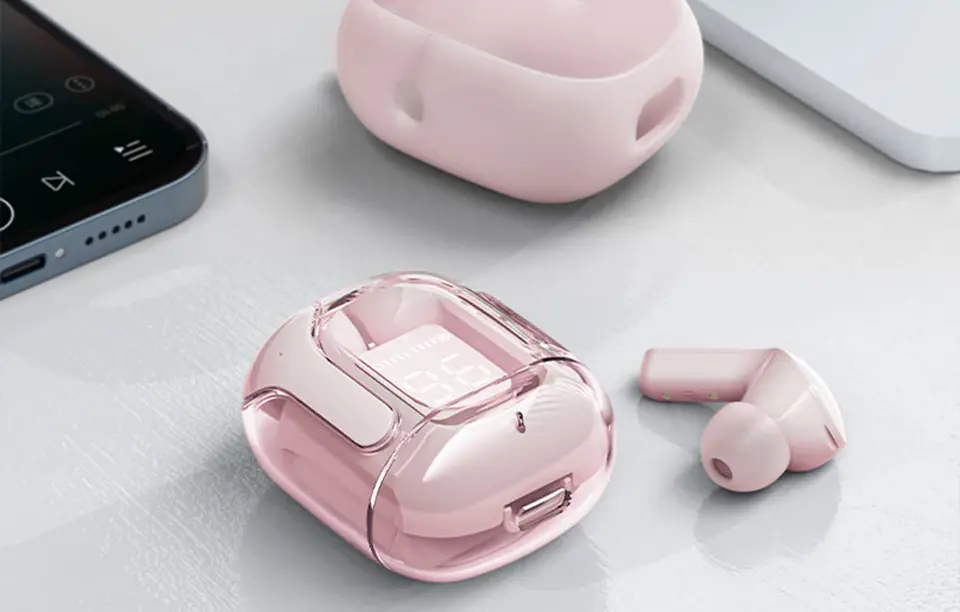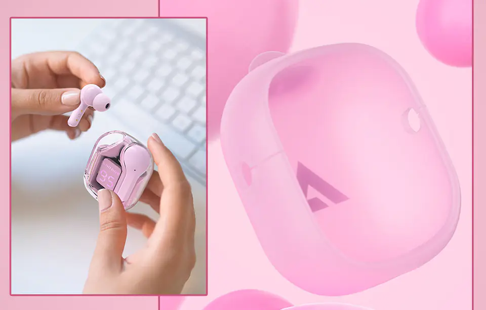 Dokanałowe słuchawki bezprzewodowe Acefast TWS z technologią Bluetooth 5.0 i klasą wodoodporności IPX4 – różowe (T6) + etui