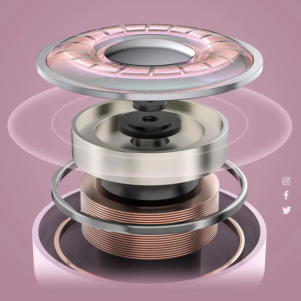 - Usłyszysz zarówno wysokie, jak i niskie tony. Przetwornik 6 mm z trójwarstwową strukturą poprawi wydajność dźwięków