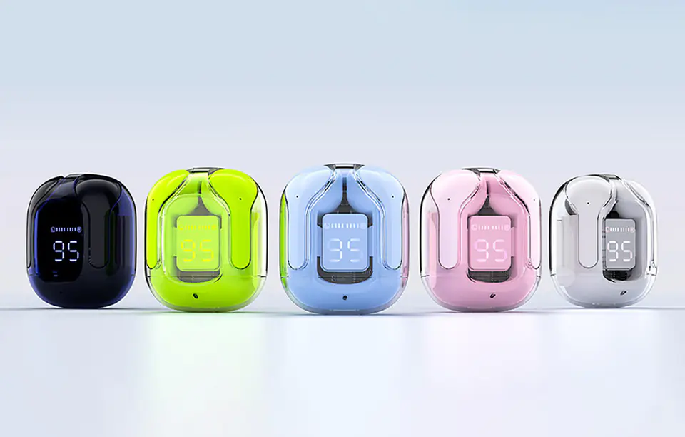 - W zestawie: 1 x etui ładujące ze słuchawkami, 1 x silikonowe etui, 1 x kabel ładujący USB Typ C, 3 x pary gumek do słuchawek, 1 x instrukcja obsługi