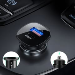 Szybka ładowarka samochodowa marki Acefast. Posiada 2 porty, USB Typ C i USB. Pierwsza wtyczka USB Typ C umożliwia ładowanie z maksymalną mocą 20W, a wtyczka USB do 18W. Pozwala na szybkie ładowanie m.in. w standardach PPS, Power Delivery, Quick Charge 3.0, AFC i FCP. Można do niej podłączyć 2 urządzenia jednocześnie. Jest wykonana z ognioodpornego materiału PC. Została wyposażona w wiele zabezpieczeń takich jak np. przed przegrzaniem, przepięciem, wysokim napięciem czy przeciążeniem.