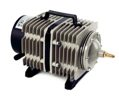 Pompa elektromagnetyczna idealnie sprawdzi się jako napowietrzacz w oczkach wodnych i zbiornikach przeznaczonych do hodowli ryb. Charakteryzuje się wysoką wydajnością i dużą mocą sprężania, co umożliwia efektywną pracę nawet na dużych głębokościach. Żaden z elementów pompy nie jest oliwiony więc tłoczone powietrze jest czyste i bezpieczne dla organizmów wodnych. Korpus z radiatorem wykonany ze stopu aluminium ZL102, dzięki czemu urządzenie nie przegrzewa się i może pracować nieustannie bez wahań wydajności. Obudowa posiada uchwyt ułatwiający przenoszenie urządzenia. Przekładnia elektromagnetyczna zapewnia wstrzykiwanie powietrza przez bezpośredni ruch posuwisto-zwrotny i zwiększa racjonalność konstrukcji. Tłok i cylinder wykonane z termoplastycznego tworzywa zwiększającego żywotność pompy i obniżającego zużycie energii.