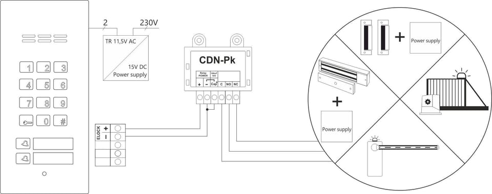 Zastosowanie modułu sygnalizacji z funkcją automatycznego otwierania drzwi: ACO CDN-U:
