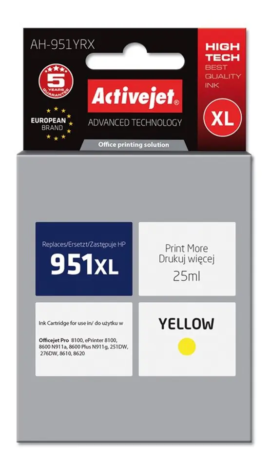 Activejet AH-951YRX Tusz zamiennik HP 951XL CN048AE; Premium; 25 ml; żółty