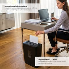 • Poziom bezpieczeństwa P-4 - tnie papier na ścinki o wymiarach 4 mm x 39 mm, zapewniając ochronę danych.