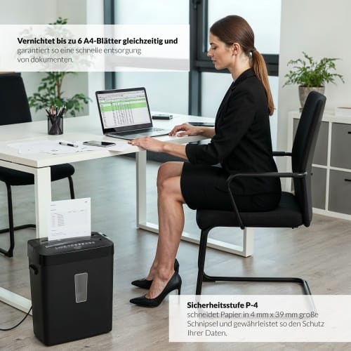 • Niszczy do 6 arkuszy A4 jednocześnie (80 g/m2), gwarantując szybkie i skuteczne pozbywanie się dokumentów.