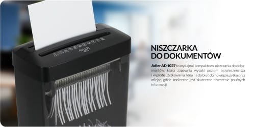 Adler AD 1037 to wydajna i kompaktowa niszczarka do dokumentów, która zapewnia wysoki poziom bezpieczeństwa i wygodę użytkowania. Idealna do biur, domowego użytku oraz miejsc, gdzie konieczne jest skuteczne niszczenie poufnych informacji.