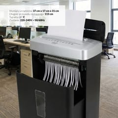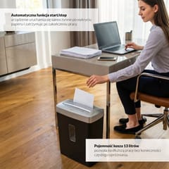 - Poziom bezpieczeństwa P-4 - tnie papier na ścinki o wymiarach 4 mm x 39 mm, zapewniając ochronę danych.