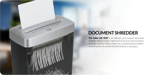 Adler AD 1037 to wydajna i kompaktowa niszczarka do dokumentów, która zapewnia wysoki poziom bezpieczeństwa i wygodę użytkowania. Idealna do biur, domowego użytku oraz miejsc, gdzie konieczne jest skuteczne niszczenie poufnych informacji.