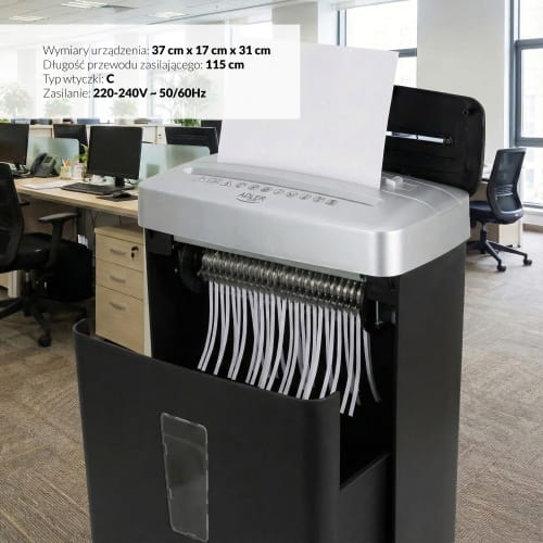 - Niszczy do 6 arkuszy A4 jednocześnie (80 g/m2), gwarantując szybkie i skuteczne pozbywanie się dokumentów.