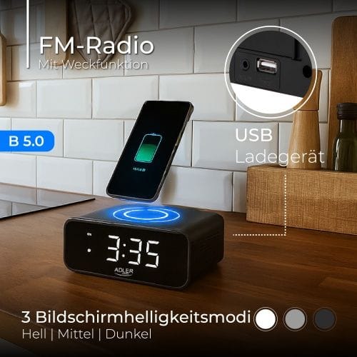 AD 1192B Radiobudzik z bezprzewodową ładowarką i fm