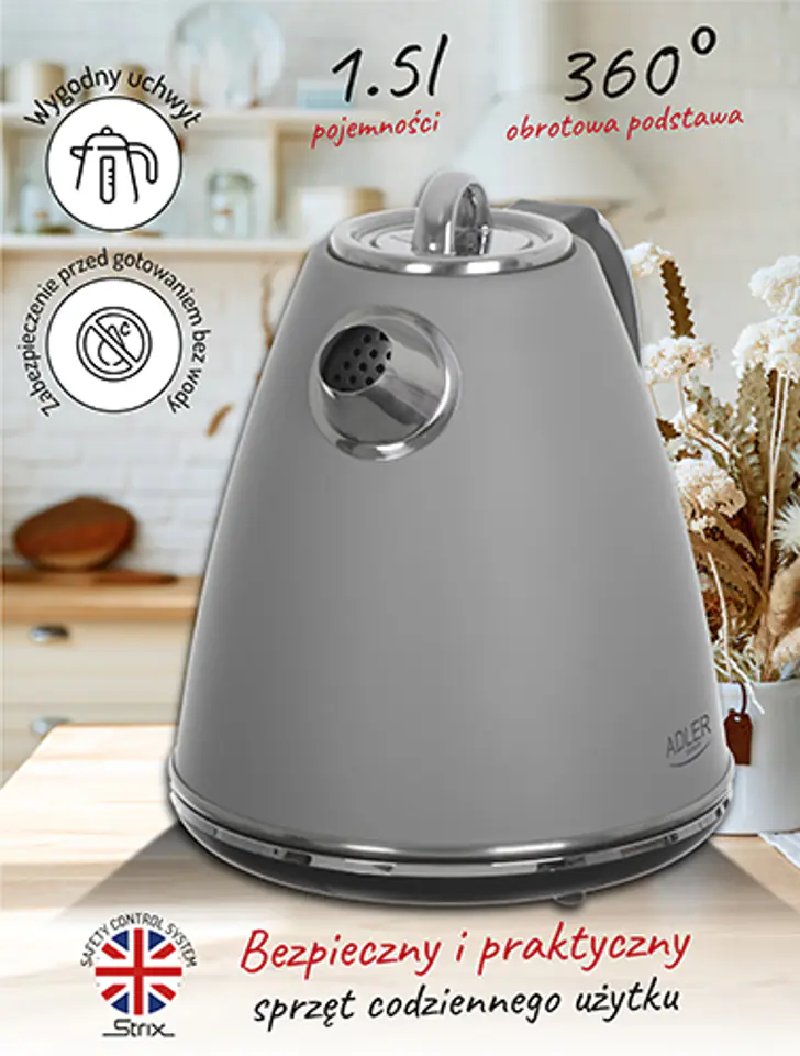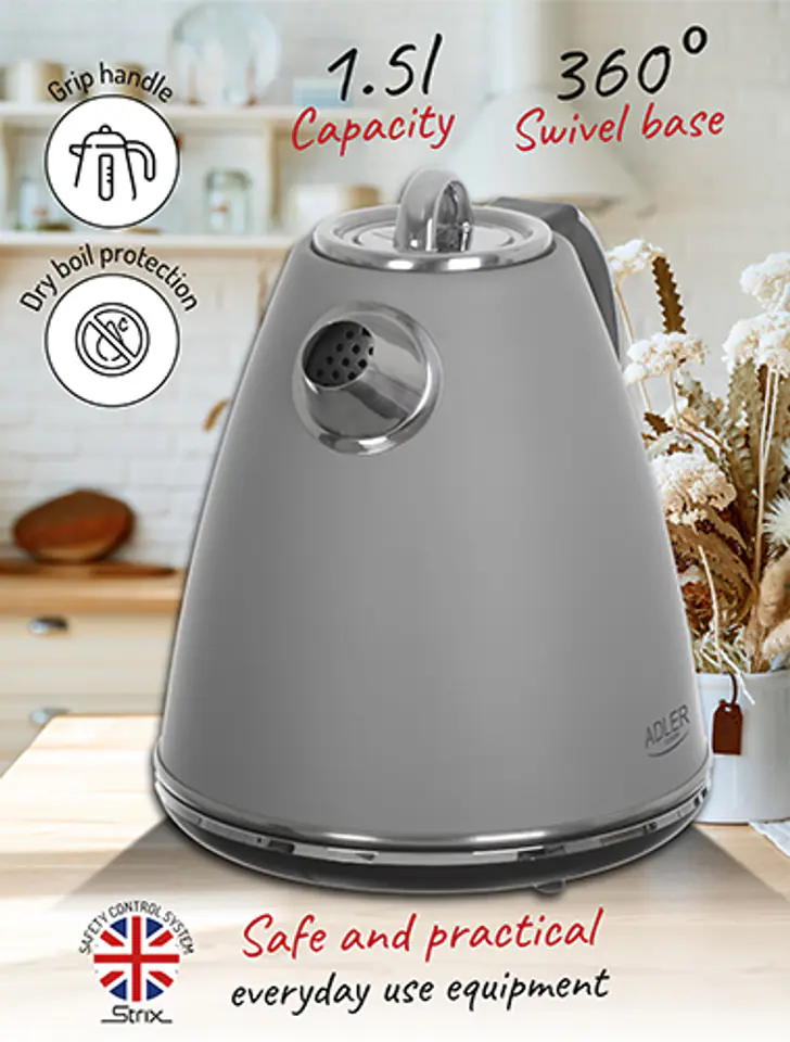AD 1343 grey Czajnik metalowy 1,5 l strix