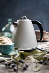 Klasyczny, 1,5-litrowy czajnik elektryczny, przydatny w każdej kuchni. Jego bezpieczeństwo zapewnia blokada uniemożliwiająca włączenie pustego czajnika, oraz automatyczne wyłączenie po zagotowaniu wody. Funkcjonalność zwiększa stabilna podstawa i czytelny wskaźnik poziomu wody. Dysponuje mocą maksymalną 2200W i wykonany jest ze stali szlachetnej, co czyni go mistrzowskim rozwiązaniem, jeśli chodzi o szybkie gotowanie wody. Ciekawy kolor i smukły kształt to cechy, dzięki którym uzupełnisz wystrój pomieszczenia urządzonego w każdym stylu.