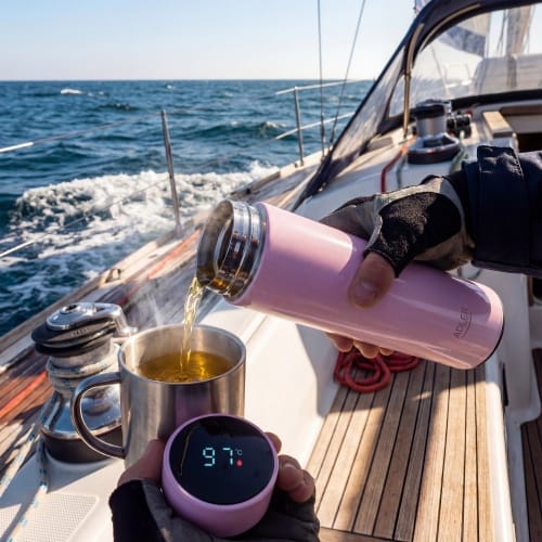 Termos AD 4506 z wyświetlaczem dotykowym LED, wskazującym aktualną temperaturę napoju, to świetne rozwiązanie dla miłośników gorących napojów. Dzięki temu można łatwo monitorować temperaturę ulubionego napoju w czasie rzeczywistym. Wyświetlacz LED umożliwia precyzyjne odczytywanie temperatury, co pozwala uniknąć poparzeń lub picia zbyt zimnych napojów. Dodatkowo dotykowy wyświetlacz sprawia, że obsługa termosu jest łatwa i intuicyjna. Urządzenie posiada precyzyjny czujnik termiczny ? odczyt temp. po odwróceniu do góry dnem na 3 sekundy. Izolacja próżniowa oraz podwójne ścianki utrzymują temperaturę dla napojów gorących 8 godzin lub zimnych do 12 godzin.W zestawie znajduje się sitko separujące fusy. Wbudowana bateria wyświetlacza LED ma bardzo długą żywotność do 30.000 dotknięć. Pojemność termosu to 473ml. Główną cechą wyróżniającą ten termos jest wbudowany wyświetlacz LED. Dzięki niemu możesz łatwo sprawdzić aktualną temperaturę zawartości termosu bez konieczności otwierania go. Wyświetlacz LED jest czytelny i jasny, umieszczony na zewnętrznej powierzchni termosu, co sprawia, że odczytywanie temperatury jest wyjątkowo wygodne.Ten nowoczesny termos to nie tylko praktyczne urządzenie, ale również stylowy dodatek dla osób ceniących sobie wygodę i nowoczesne rozwiązania.