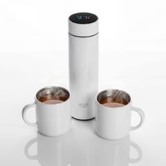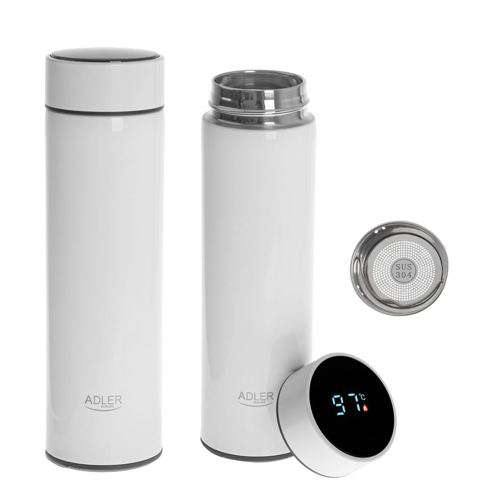 Termos AD 4506 z wyświetlaczem dotykowym LED, wskazującym aktualną temperaturę napoju, to świetne rozwiązanie dla miłośników gorących napojów. Dzięki temu można łatwo monitorować temperaturę ulubionego napoju w czasie rzeczywistym. Wyświetlacz LED umożliwia precyzyjne odczytywanie temperatury, co pozwala uniknąć poparzeń lub picia zbyt zimnych napojów. Dodatkowo dotykowy wyświetlacz sprawia, że obsługa termosu jest łatwa i intuicyjna. Urządzenie posiada precyzyjny czujnik termiczny ? odczyt temp. po odwróceniu do góry dnem na 3 sekundy. Izolacja próżniowa oraz podwójne ścianki utrzymują temperaturę dla napojów gorących 8 godzin lub zimnych do 12 godzin.W zestawie znajduje się sitko separujące fusy. Wbudowana bateria wyświetlacza LED ma bardzo długą żywotność do 30.000 dotknięć. Pojemność termosu to 473ml. Główną cechą wyróżniającą ten termos jest wbudowany wyświetlacz LED. Dzięki niemu możesz łatwo sprawdzić aktualną temperaturę zawartości termosu bez konieczności otwierania go. Wyświetlacz LED jest czytelny i jasny, umieszczony na zewnętrznej powierzchni termosu, co sprawia, że odczytywanie temperatury jest wyjątkowo wygodne.Ten nowoczesny termos to nie tylko praktyczne urządzenie, ale również stylowy dodatek dla osób ceniących sobie wygodę i nowoczesne rozwiązania.