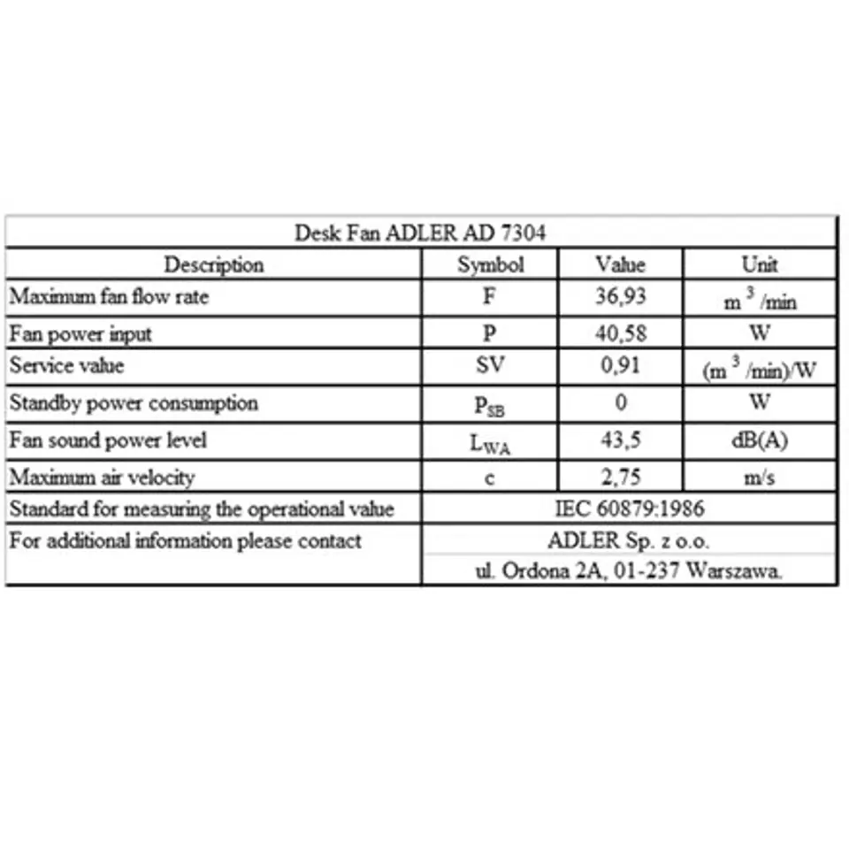 AD 7304 Wentylator biurkowy 40cm