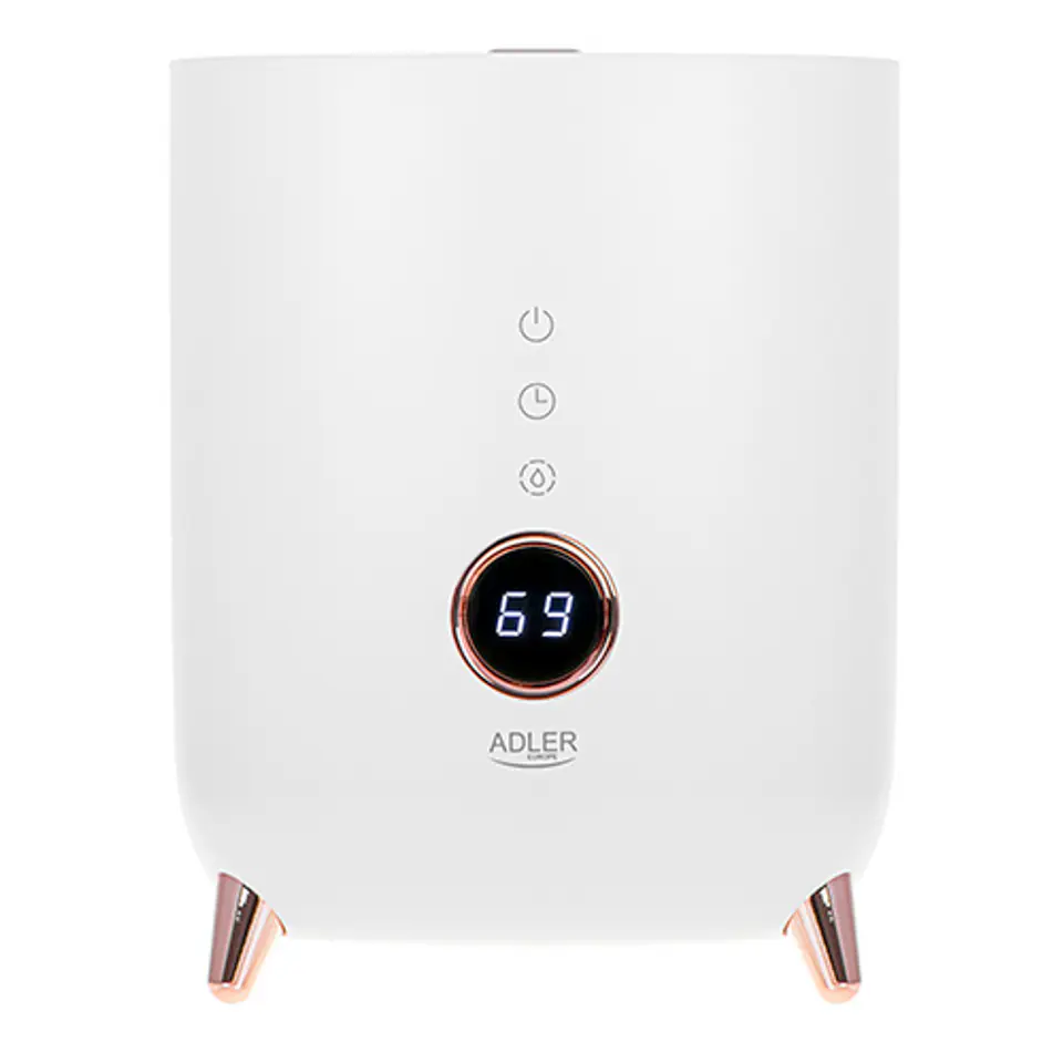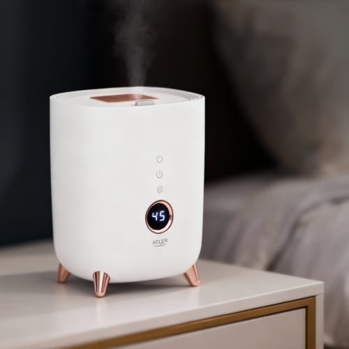 Oprócz tego, nawilżacz Adler 7972 został wyposażony w funkcję higrometru, który precyzyjnie ustawia docelową wilgotność w zakresie od 40% do 90%. Zaawansowany czujnik braku wody zapewnia bezpieczeństwo użytkowania, automatycznie wyłączając urządzenie w przypadku wyczerpania zasobów wody.Dzięki timerowi możesz dostosować czas pracy nawilżacza do swoich potrzeb, wybierając spośród opcji automatycznego wyłączania po 1, 2, 4 lub 6 godzinach. Trzy-stopniowa regulacja intensywności nawilżania pozwala na dopasowanie działania urządzenia do wielkości i warunków pomieszczenia.Zbiornik na wodę o dużej pojemności 4,0 litrów oraz długi czas pracy na jednym napełnieniu wynoszący ponad 13 godzin gwarantują długotrwałe i efektywne nawilżanie.