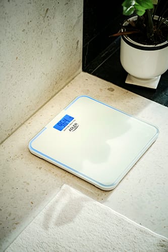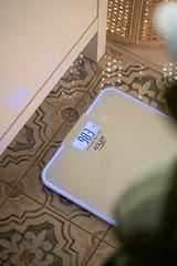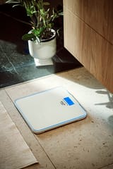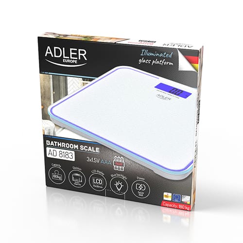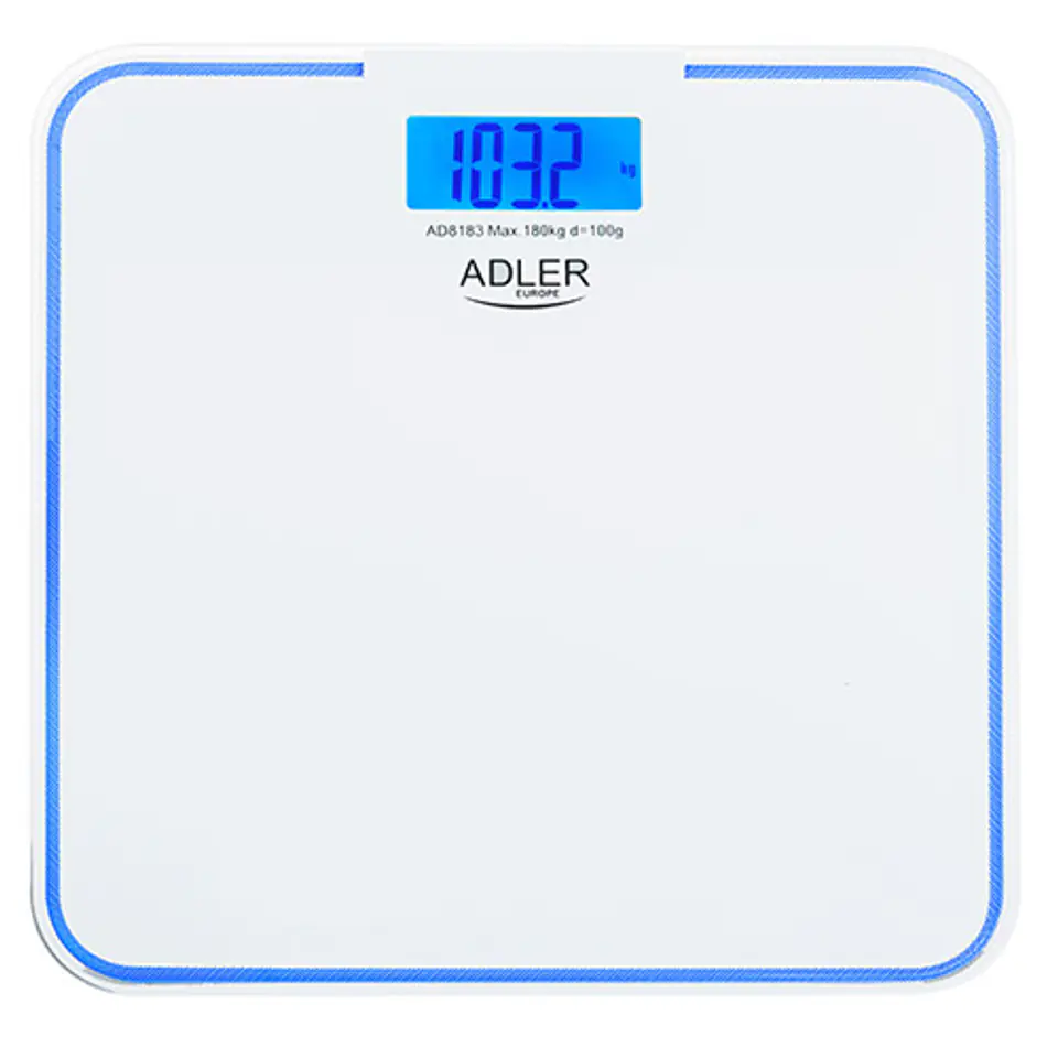 - Niebieskie Podświetlenie Krawędzi i Platformy: Eleganckie, niebieskie podświetlenie nie tylko ułatwia korzystanie z wagi w słabo oświetlonych pomieszczeniach, ale także dodaje urządzeniu nowoczesnego charakteru.