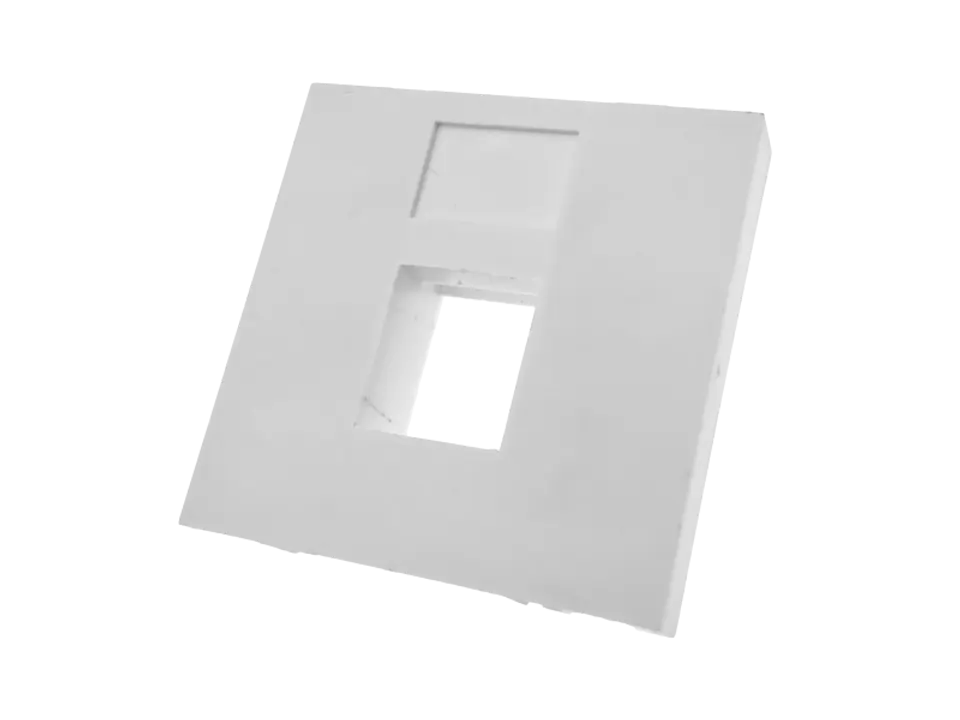 Adapter prosty 45x45mm, pojedyńczy, dedykowany do modułu keystone RJ45/RJ12/RJ11 lub adapterów światłowodowych. Wykonany z tworzywa sztucznego w kolorze białym.
