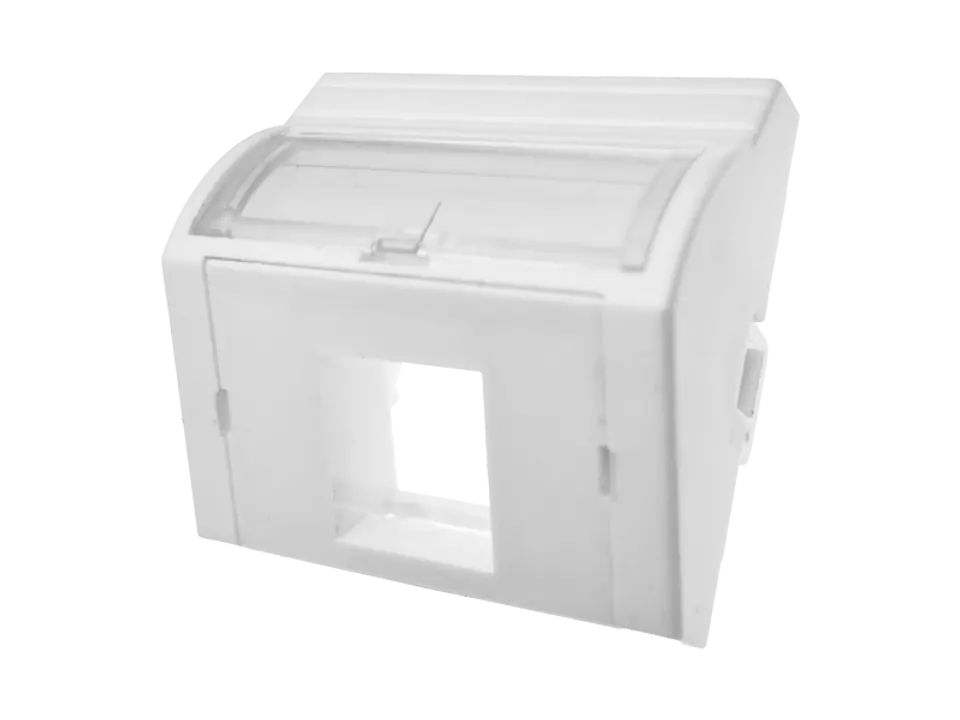 Znajduje zastosowanie zarówno w rozwiązaniach natynkowych, podtynkowych, podłogowych oraz kanałowych. Przystosowny do wszystkich modułów o mocowaniu w standardzie keystone jack z klapkami przeciwkurzowymi lub bez.