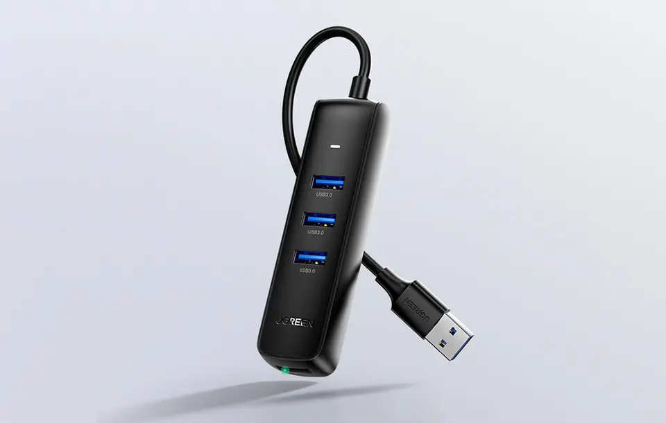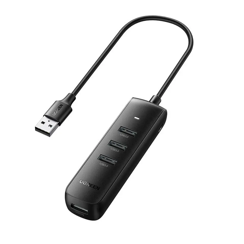 Producent UGREENModel CM164Wtyczka USBPorty 4x USB 3.0 Długość przewodu 0.25 mPrędkość transferu 5 GbpsWymiary 1,8 x 2,7 x 10 cmKolor Czarny