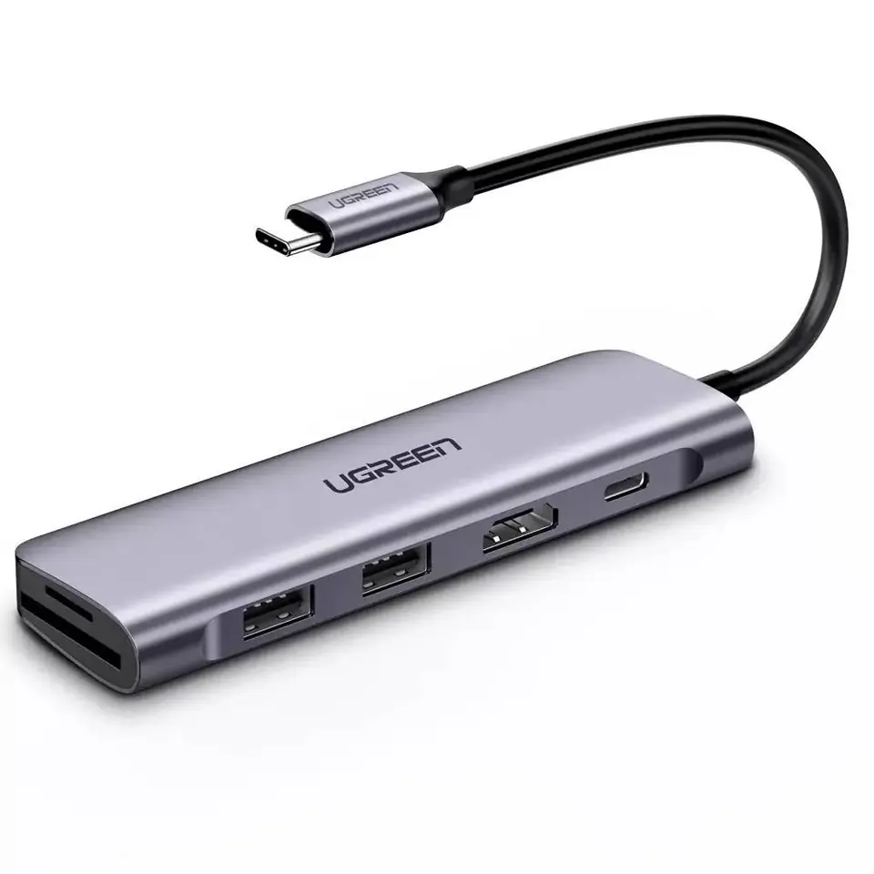 Zwiększ funkcjonalność swojego portu C przy pomocy adaptera UGREEN. Urządzenie posiada 2 wejścia USB 3.0, port PD, Wejście HDMI 4K, oraz czytniki kart SD oraz micro SD.