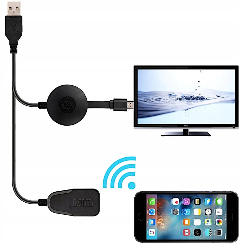 Kod produktu: 1030018Bezprzewodowy adapter WiFi pozwala na przesył obrazu z telefonu, tabletu lub komputera na telewizor poprzez port HDMI bez użycia kabli. Wystarczy podłączyć adapter do portu HDMI w telewizorze oraz przewód USB do zasilania, a następnie włączyć funkcję przesyłu obrazu na urządzeniu mobilnym. Urządzenie umożliwia oglądanie filmów, zdjęć, odtwarzanie muzyki oraz wyświetlanie dokumentów. Dla prawidłowego działania wymagane jest pobranie aplikacji Screen Mirroring ze sklepu Google Play.Cechy produktu: