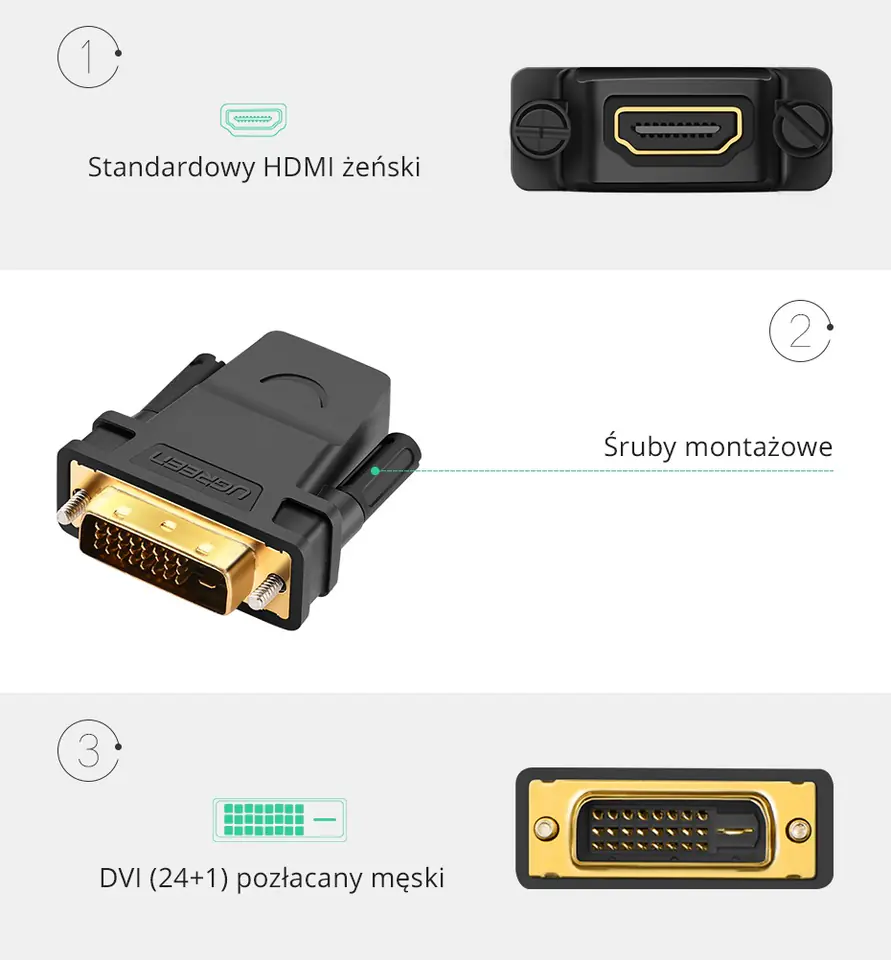 | DVI-D (24+1) kompatybilny również z DVI-I (24+5) do HDMI | Złącza |