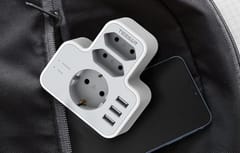Urządzenie oferuje aż 6 portów: 3 złącza USB-A, 2 eurogniazda oraz 1 gniazdo AC (typ F – Schuko). Umożliwia to jednoczesne ładowanie telefonu, tabletu, laptopa i innych urządzeń, bez konieczności używania wielu ładowarek. Każdy port jest wygodnie rozmieszczony, co pozwala na swobodne korzystanie z podłączonych przewodów bez plątania.