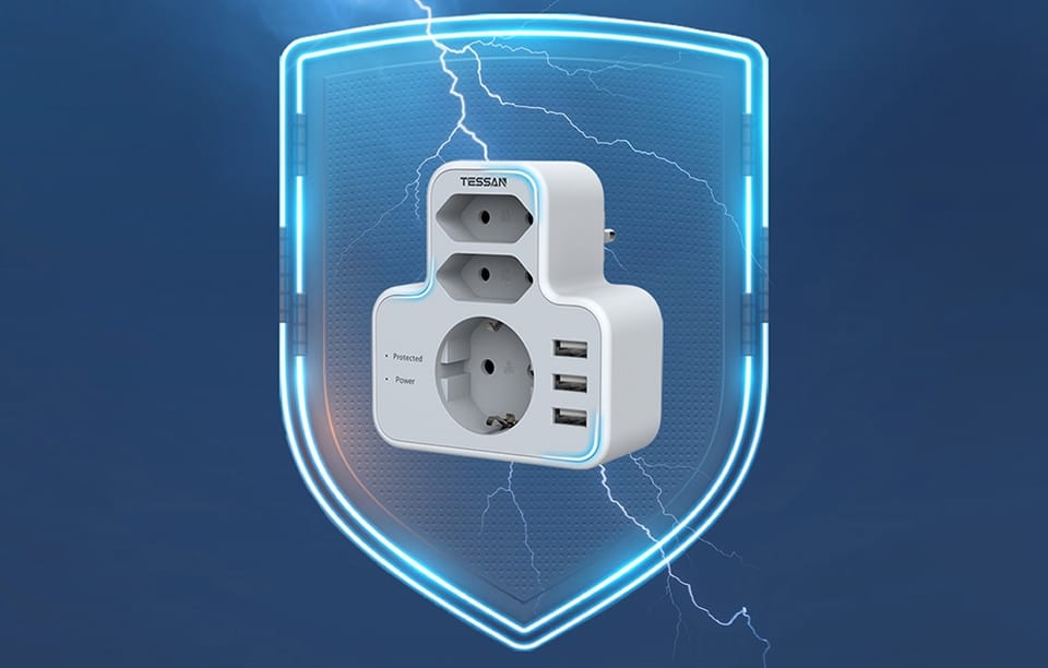 Tessan TS-327 to kompaktowy adapter ścienny 6 w 1, który łączy w sobie funkcjonalność, bezpieczeństwo i wygodę użytkowania. Dzięki zaawansowanej ochronie przeciwprzepięciowej chroni Twoje urządzenia elektroniczne przed nagłymi skokami napięcia oraz szkodliwymi szczytami zasilania. Wbudowane diody LED informują o stanie zasilania i aktywności zabezpieczeń, zapewniając pełną kontrolę nad podłączonym sprzętem.