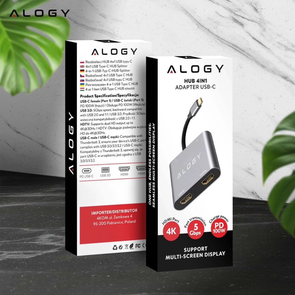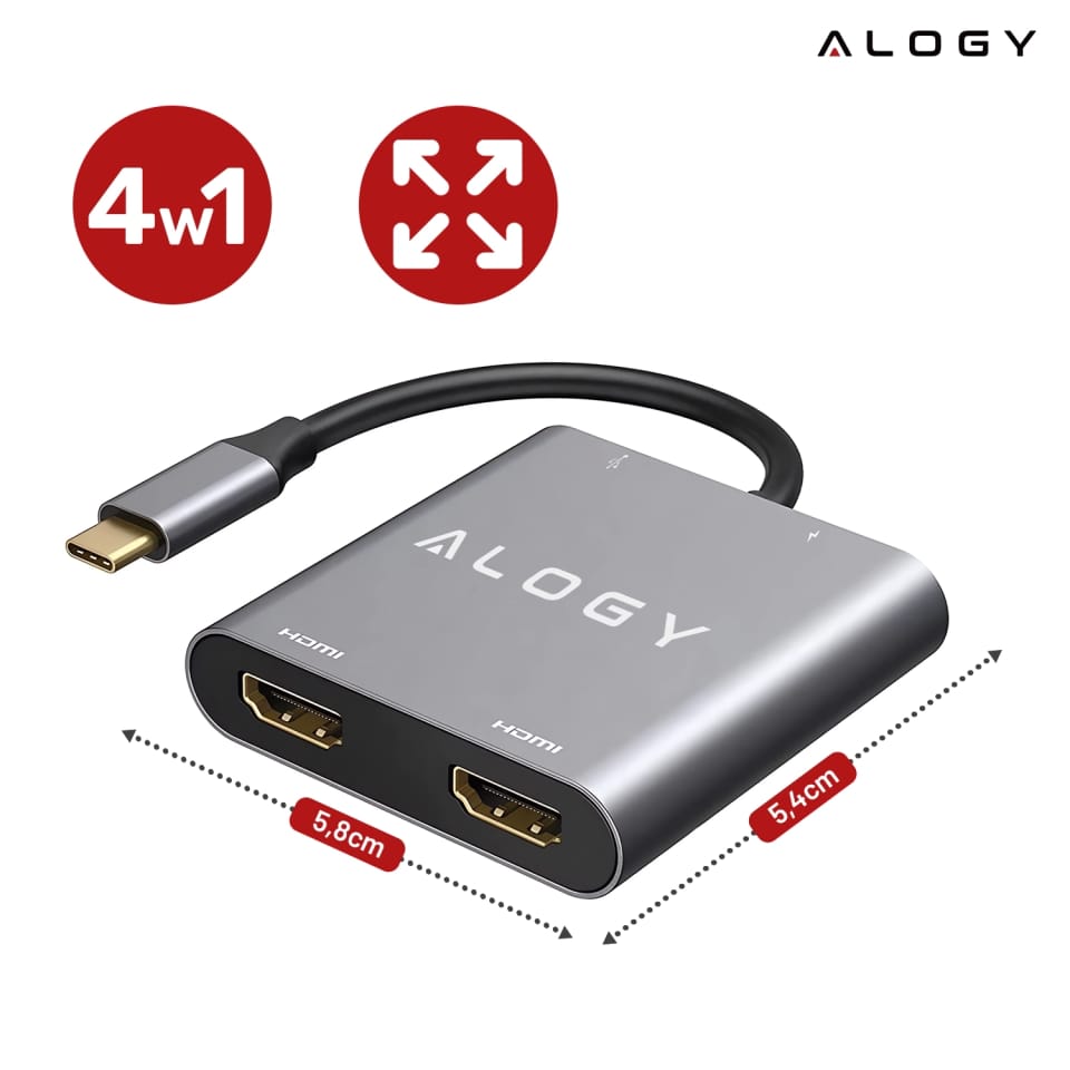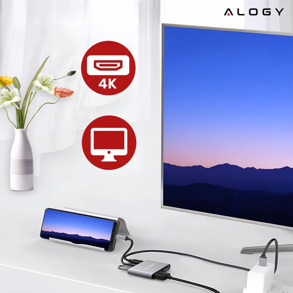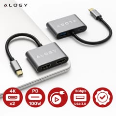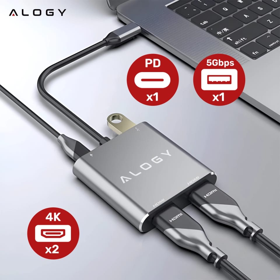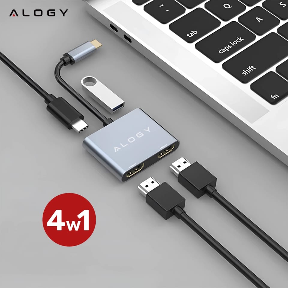 ✅ Wyobraź sobie, że w jednej chwili podłączasz laptopa do dwóch monitorów 4K, ładujesz go z pełną mocą i korzystasz z szybkiego portu USB — a wszystko to przez jedno złącze USB-C. Adapter HUB 4w1 Alogy to kompaktowe rozwiązanie, które eliminuje konieczność korzystania z wielu kabli, przejściówek i gniazdek.
