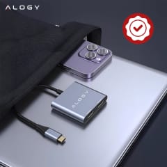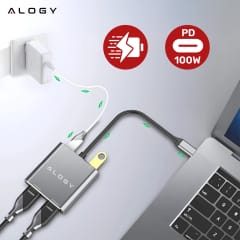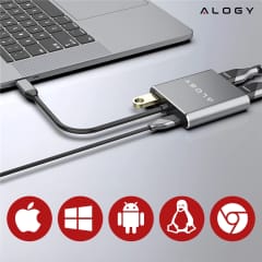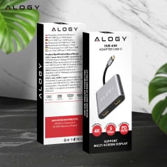 ▶️ Adapter HUB 4w1 USB-A, USB-C, HDMI ALOGY MULTIHUB aluminiowy