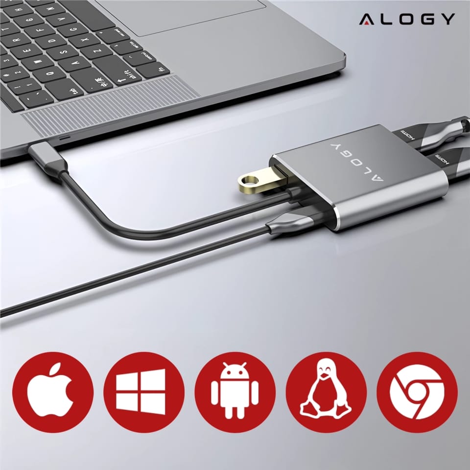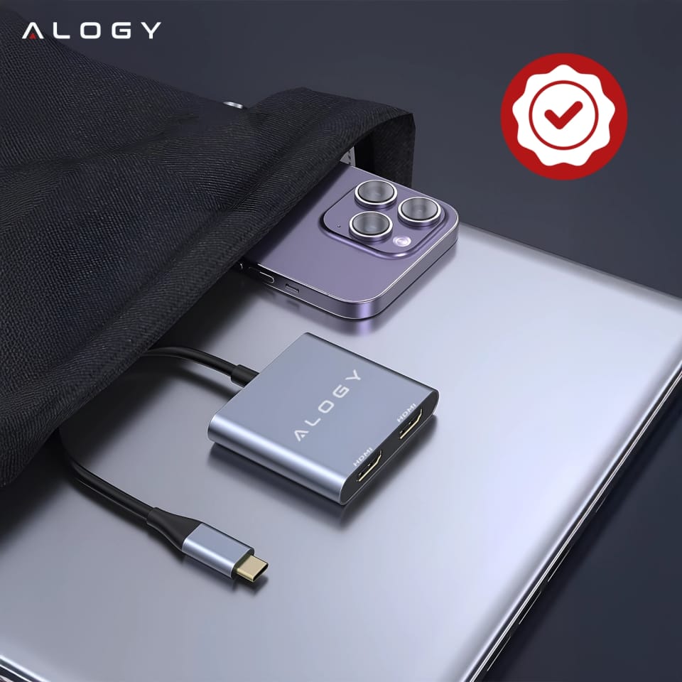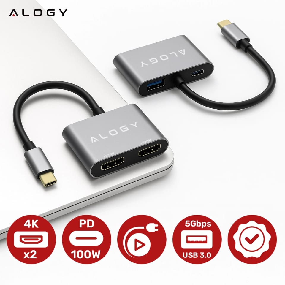 ⛔ Nowoczesne laptopy są lekkie i smukłe, ale często brakuje im gniazd HDMI czy USB. Z adapterem Alogy wystarczy jedno złącze USB-C, by natychmiast zyskać dwa wyjścia HDMI, port ładowania i USB 3.0. Rozszerzasz funkcjonalność bez zajmowania kilku portów i bez plątaniny kabli.
