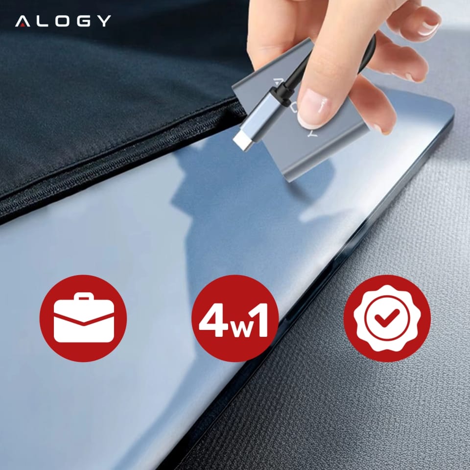 ✅ Z Alogy HUB 4w1 stworzysz profesjonalne stanowisko pracy w domu, podłączysz projektor do prezentacji lub wyświetlisz film na TV w jakości 4K. Jeden adapter, wiele możliwości — i żadnych kompromisów. Wystarczy jedno złącze USB-C, aby zamienić Twój laptop lub tablet w multimedialne centrum sterowania.