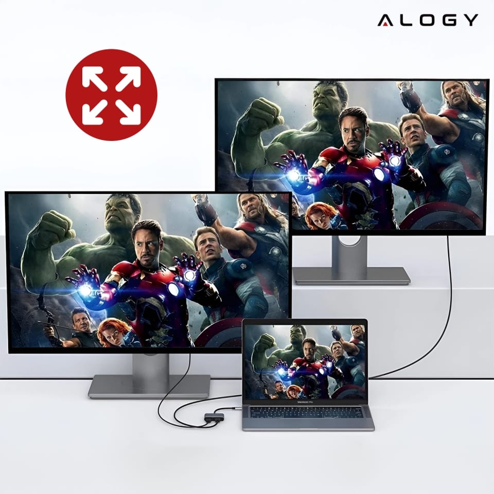 ✅ Wiele tanich adapterów obsługuje tylko jeden ekran lub ogranicza rozdzielczość. Alogy daje Ci podwójne wyjście HDMI 4K, dzięki czemu możesz pracować na dwóch ekranach jednocześnie w pełnej jakości UHD. Prezentacje, arkusze, edycja wideo – wszystko staje się przejrzyste i wygodne..