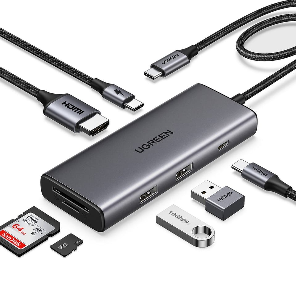 Adapter 7w1 UGREEN Hub USB do 2x USB-A 3.2, USB-C 3.2, SD/TF, PD