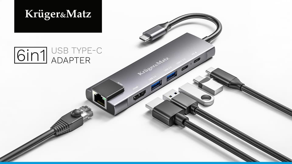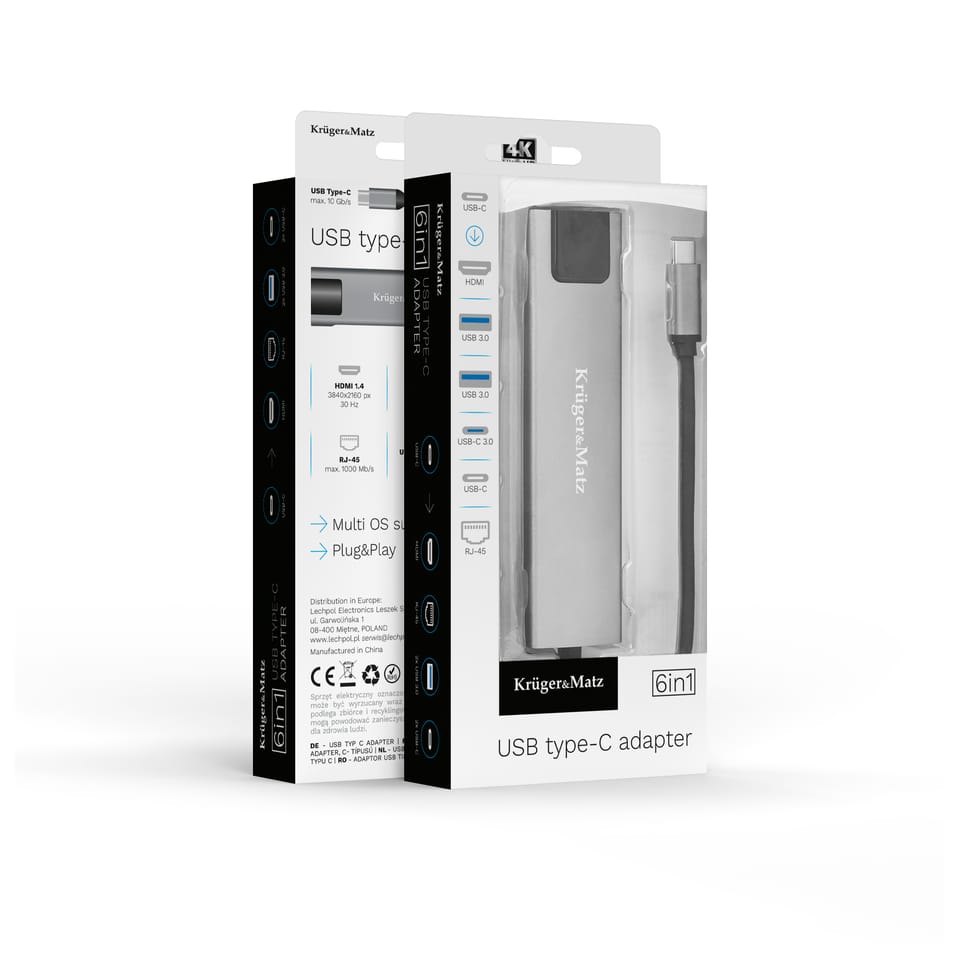 Adapter HUB) USB typu C na HDMI/2x USB3.0/2x USB typu C/RJ4