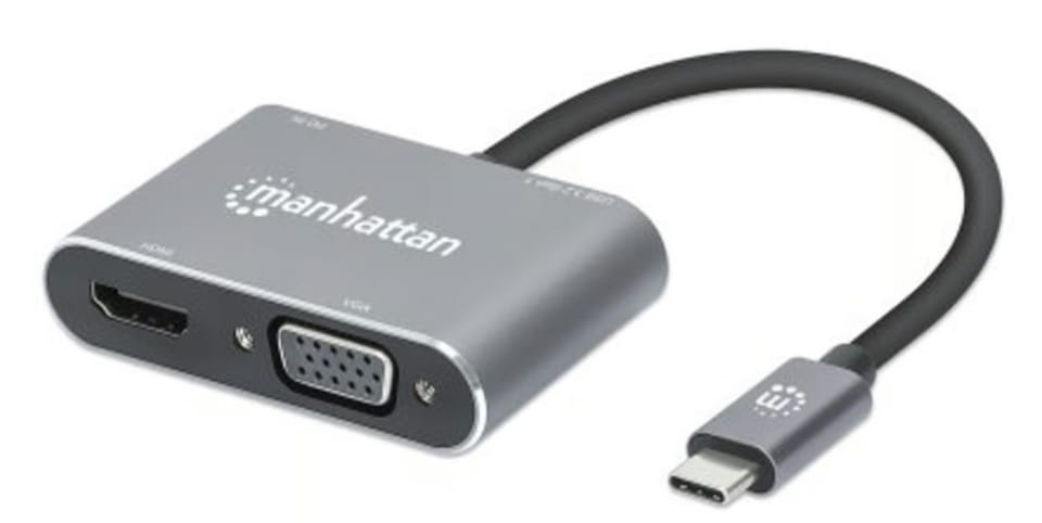 Manhattan Usb-C Dock/Hub, Ports (X4): Hdmi, Usb-A, Usb-C And Vga, With Power Delivery (87W) To Usb-C Port (Note Add Usb-C Wall Charger And Usb-C
