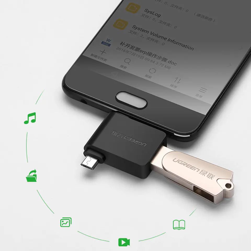 Adapter umożliwia podłączenie do smartfonów, komputerów czy innych urządzeń z portem USB-C oraz micro, kabli, pamięci przenośnych czy innych akcesoriów posiadających wtyczkę USB-A.